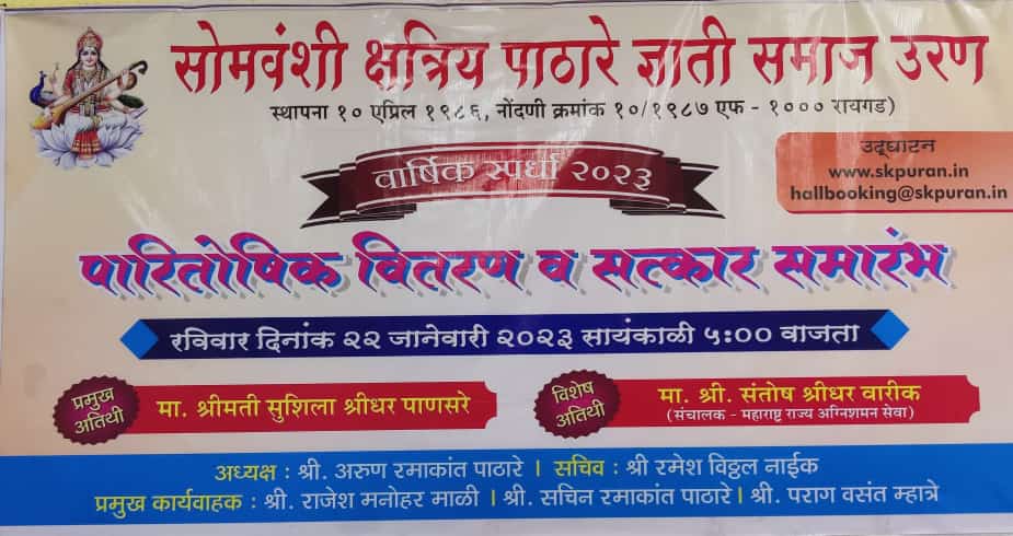 विशेष सुट : फक्त सभासद बंधु – भगिनींना SKP हॉल बुकिंग मध्ये १०००/- रुपये सुट ( रामकृष्ण आत्माराम सभा मंडप, उरण, नागाव चिंबलथळी )